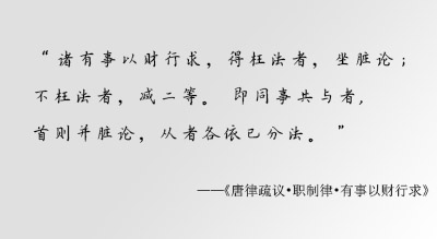 对于受贿官员,唐律一律从重从严量刑,并以受贿之后的结果作为佐证。“诸监临主司受财而枉法者,一尺杖一百,一匹加一等,十五四绞;不枉法者,一尺杖九十,二匹加一等,三十匹加役流。”